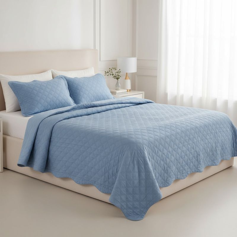 O Kit é composto por 01 Cobre Leito e 2 Porta Travesseitos confeccionados em tecido de Poliéste em ambos os lados e enchimento em manta acrílica. Seu Matelasse Ultrassonico proporciona riqueza de detalhes contribuindo para seu conforto e beleza