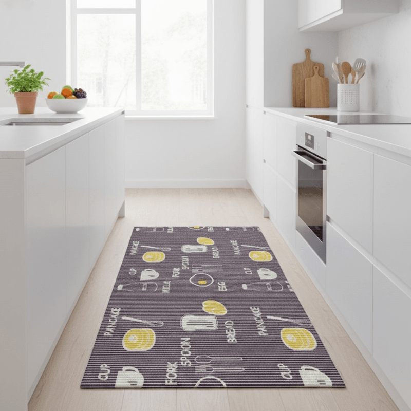 Com um convidativo tema de café da manhã em tons de marrom escuro, esta passadeira possui uma gravação canelada e é antimofo, higiênica, fácil de limpar (apenas com detergente neutro e pano úmido) e possui secagem rápida.