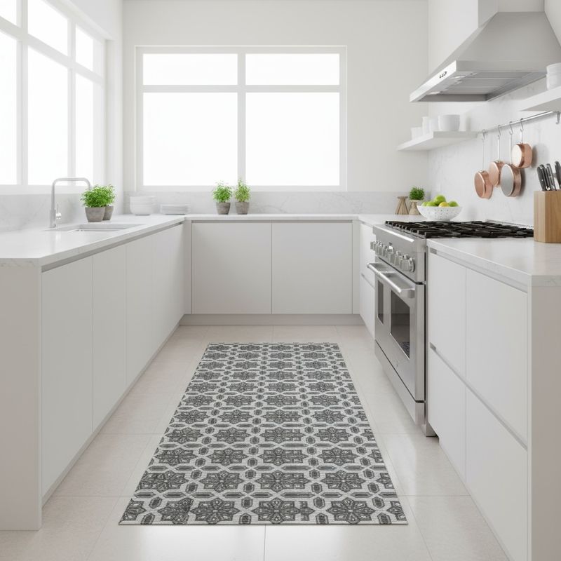 Vendida por metro linear em rolos de 15,00m de comprimento e 43cm de largura, a Passadeira Soft Decor Mandalas Branco/Cinza/Preto é a escolha inteligente para quem busca um produto durável, versátil e que promove bem-estar e estilo no dia a dia.