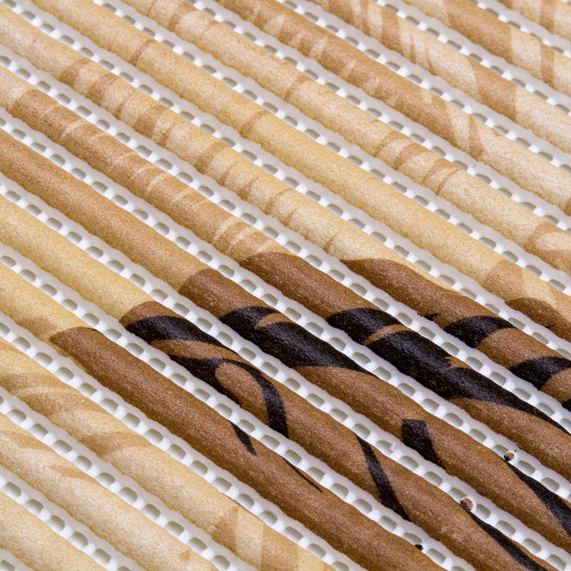 Sua superfície possui uma gravação canelada antiderrapante, e sua estrutura "soft" garante alta absorção de impacto, conforto e um agradável efeito massageador.