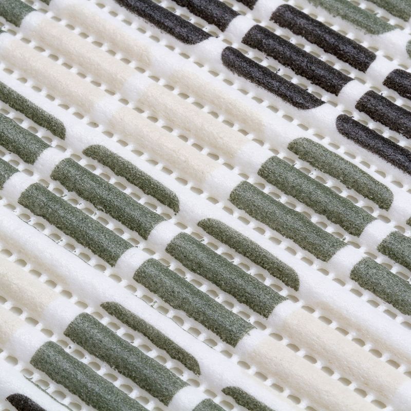Sua superfície possui uma gravação canelada antiderrapante, e sua estrutura "soft" garante alta absorção de impacto, conforto e um agradável efeito massageador.
