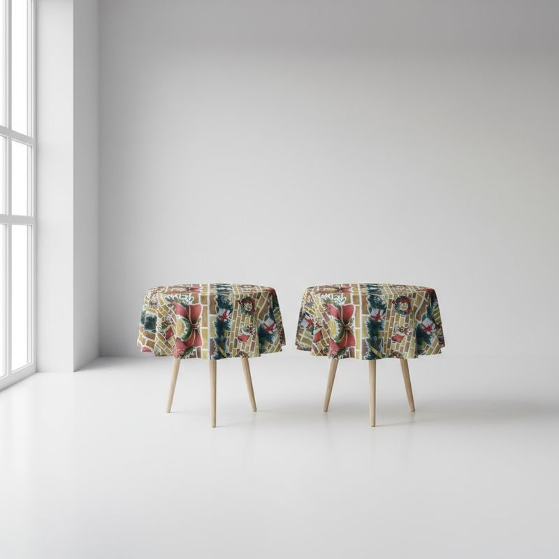 Com um encantador tema natalino de tijolos em tons de bege, verde e vermelho, onde o bege é a cor predominante, este TNT possui um acabamento fosco.